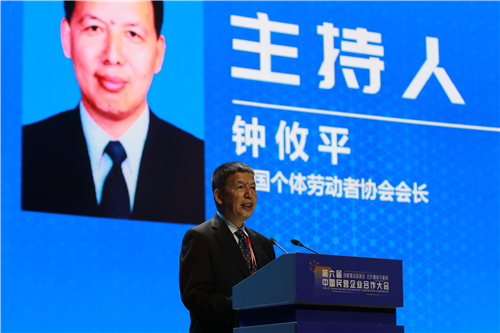?。ㄖ袊鴤€(gè)體勞動(dòng)者協(xié)會會長鐘攸平主持大會)