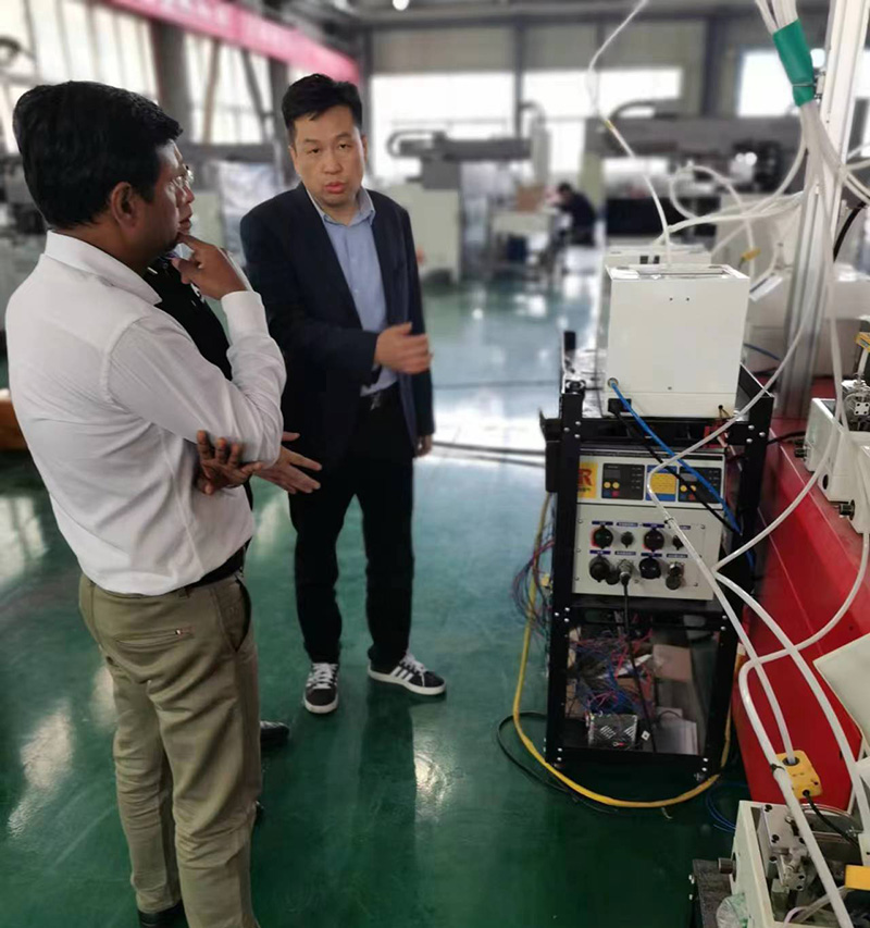 2023年5月11日,印度客戶漂洋過海來到我們廠參觀考察并驗(yàn)收之前訂的數(shù)控螺柱焊機(jī)。