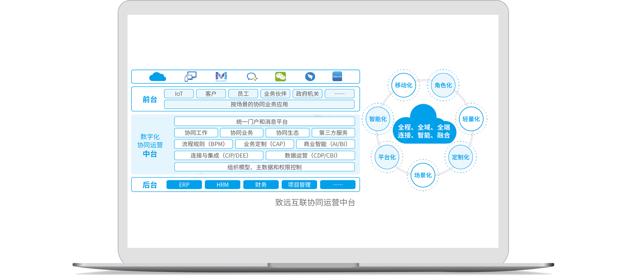 致遠互聯(lián)A8+ V8.0 新一代智慧型協(xié)同運營平臺,基于中臺戰(zhàn)略,致力于為企業(yè)構(gòu)建和完善“數(shù)字+ 智能”的協(xié)同運營體系,以組織模型為基礎(chǔ),連接各項工作和業(yè)務(wù),聚合信息、資源和能力,實現(xiàn)組織內(nèi)和跨組織的高協(xié)同,并延展到企業(yè)與外部伙伴、企業(yè)與公眾的生態(tài)參與型平臺,結(jié)合社交化輕協(xié)作提升全員應(yīng)用體驗,從而支撐企業(yè)戰(zhàn)略的執(zhí)行、確保企業(yè)創(chuàng)新變革的敏捷和管理運營的有序。