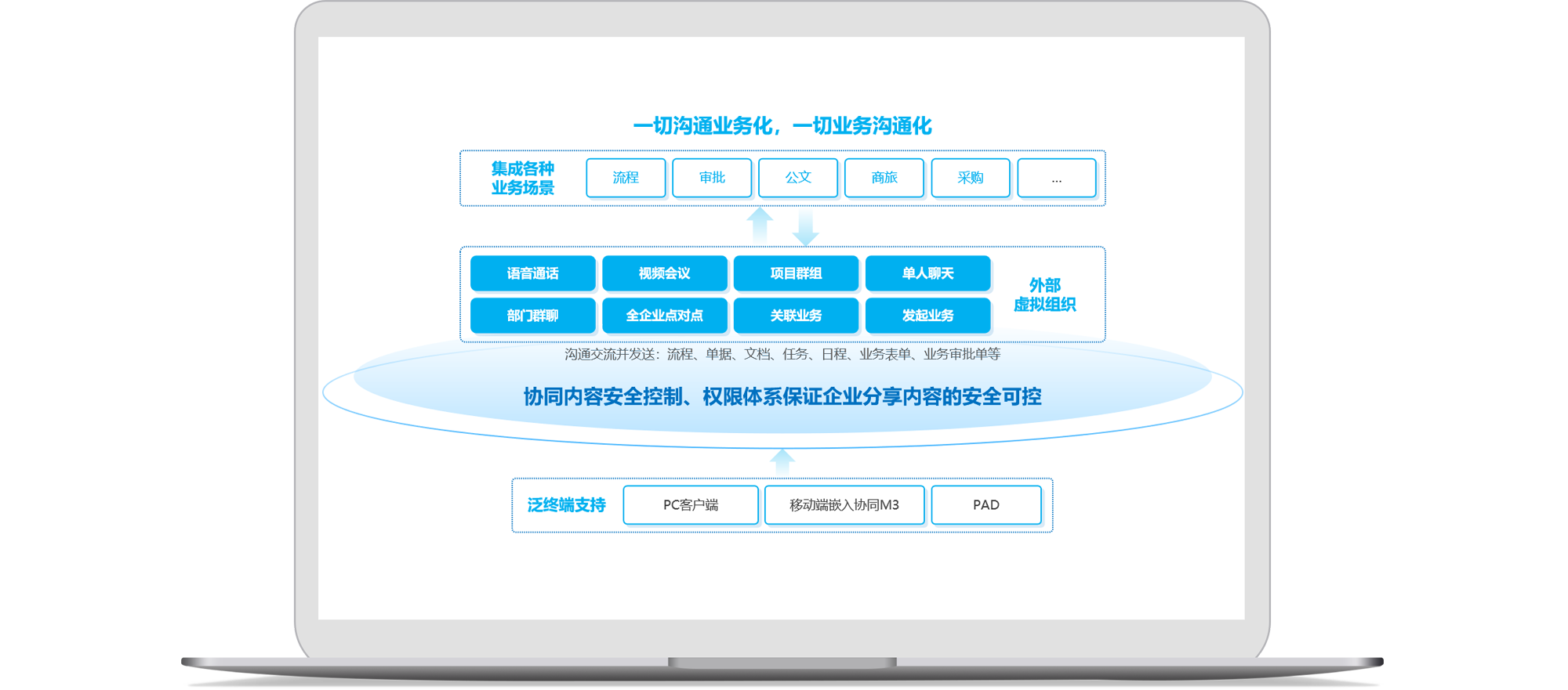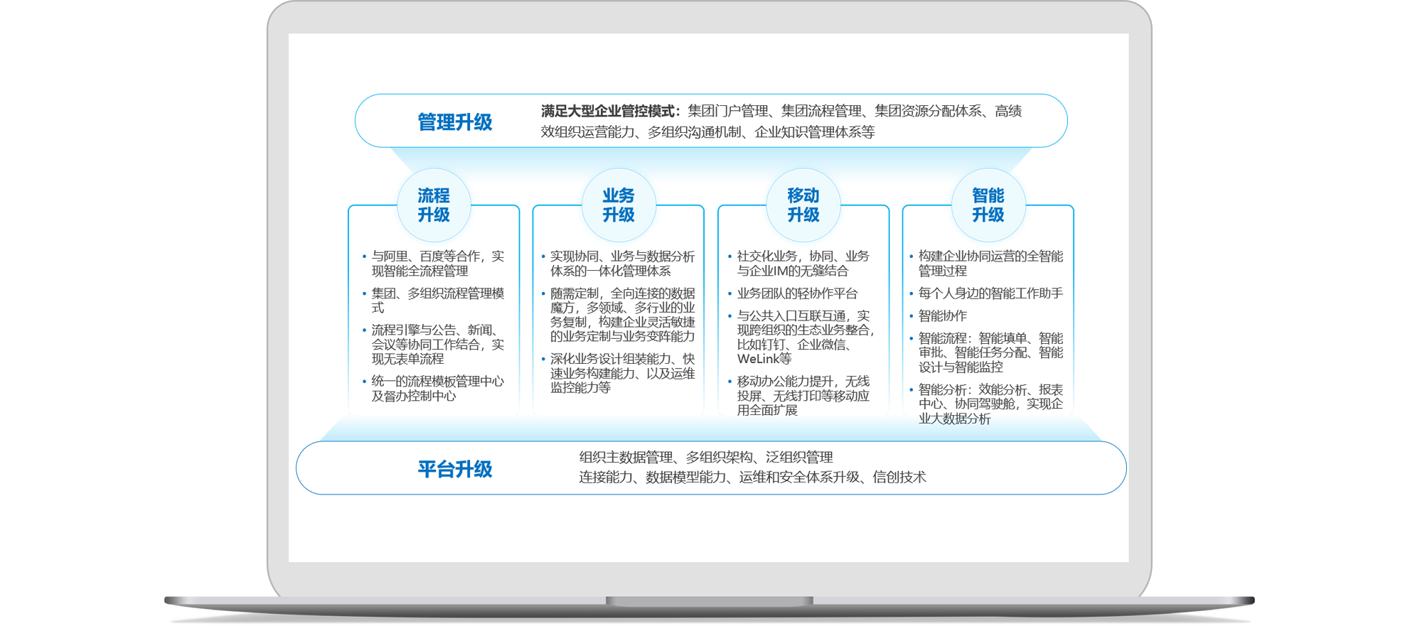 提供滿足中大型企業(yè)、集團企業(yè)應(yīng)用業(yè)務(wù)場景和管理模式,進一步深化“協(xié)同”在企業(yè)管理運營中的價值,提升企業(yè)組織內(nèi)部、產(chǎn)業(yè)鏈生態(tài)之間的協(xié)同效率,賦能企業(yè)數(shù)字化、智能化發(fā)展