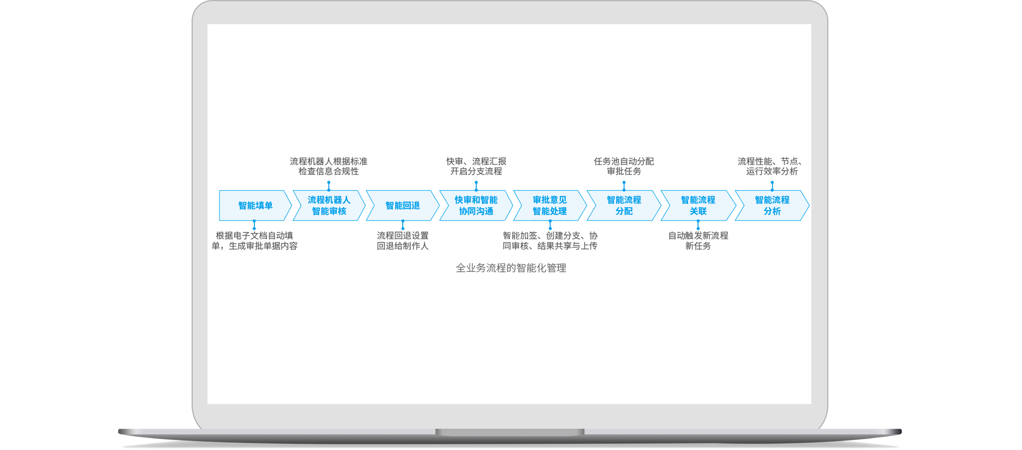在企業(yè)流程過程中,從設(shè)計、流轉(zhuǎn)、審批等各個環(huán)節(jié),都可以賦予其自動化的AI能力,提升企業(yè)業(yè)務(wù)資源的流轉(zhuǎn)協(xié)同能力, 致遠互聯(lián) A8+ V8.0 價值升級讓業(yè)務(wù)過程聰明起來。A8+ V8.0 智能流程管理通過NLP 文本抽取技術(shù)、流程智能化工具等,實現(xiàn)智能填單、智能分配、智能審批、智能聯(lián)動等業(yè)務(wù)全流程的智能化管理,提升企業(yè)人工效率、業(yè)務(wù)處理效率,達到解放人力、提高企業(yè)整體效能的目標。