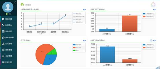 系統(tǒng)可建立HR管理門戶,進(jìn)入HR門戶后,即可看到HR管理的相應(yīng)信息,如:企業(yè)員工學(xué)歷分布、培訓(xùn)記錄、人事公告等。