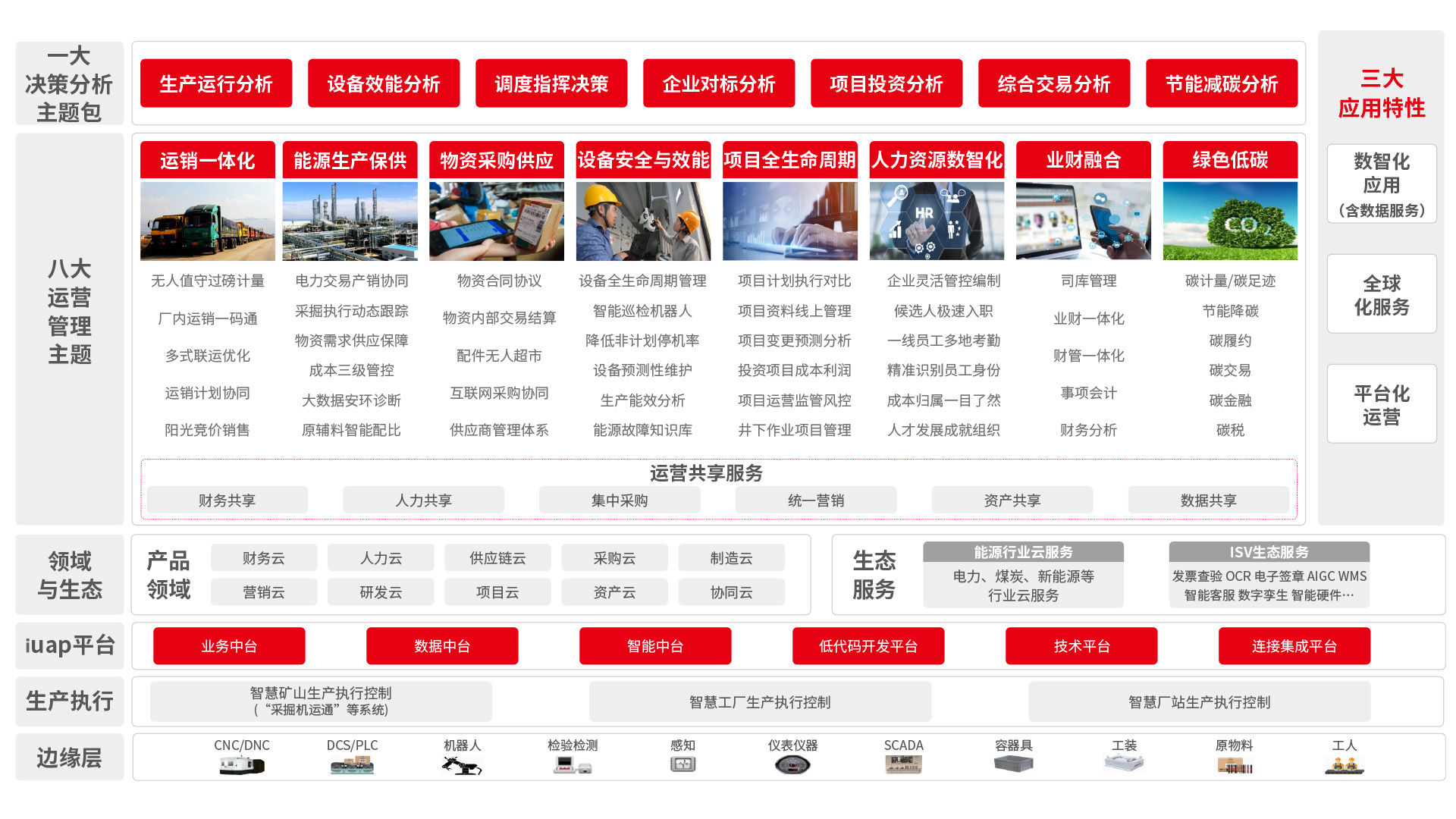 全球能源轉(zhuǎn)型的趨勢是推動能源結(jié)構(gòu)向低碳化、清潔化、終端能源電氣化發(fā)展,而數(shù)智化技術(shù)在此過程中將發(fā)揮無可替代的作用。在能源企業(yè)數(shù)智化轉(zhuǎn)型過程中,以“綠色網(wǎng)絡(luò),數(shù)智驅(qū)動”為理念,打通企業(yè)內(nèi)外部,構(gòu)筑橫向到邊組織業(yè)務(wù)協(xié)同關(guān)系,優(yōu)化產(chǎn)業(yè)上下游,建立縱向到端的產(chǎn)品供需協(xié)同關(guān)系。將能源產(chǎn)供銷通路與行業(yè)戰(zhàn)略發(fā)展目標(biāo)相結(jié)合,達(dá)成“雙碳”戰(zhàn)略目標(biāo),提升企業(yè)運(yùn)營、數(shù)據(jù)運(yùn)營、產(chǎn)業(yè)鏈運(yùn)營的綜合能力。