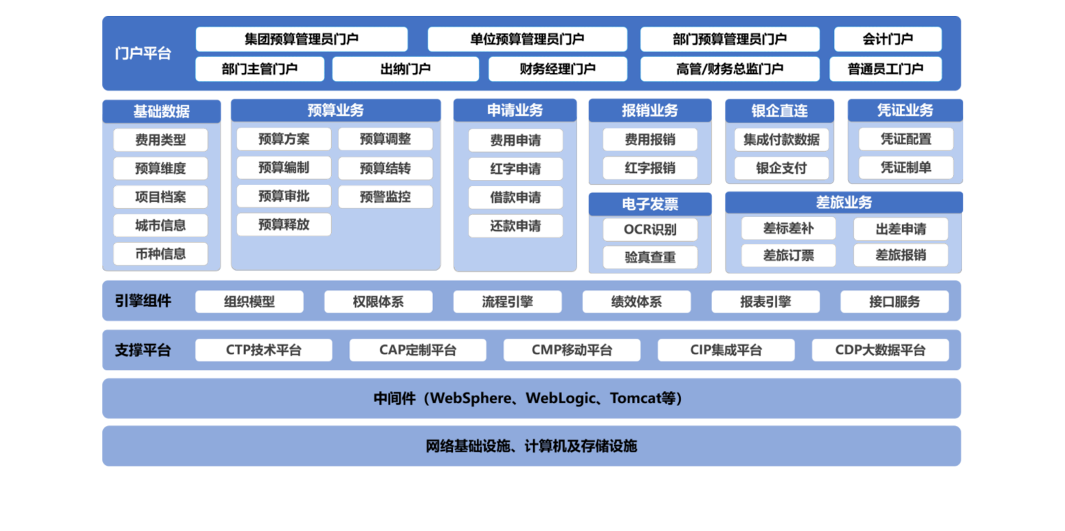 致遠費控管理系統(tǒng)依托于V5平臺的工作流程,以“業(yè)務財務一體化”為思路,促進單一的財務核算向管理財務轉(zhuǎn)變,將不同單位、不同費用的各類定額標準、控制策略融入到預算、費用報銷、差旅、票據(jù)管理、銀企支付、ERP(憑證)集成等豐富的財務管理場景,結(jié)合OCR、智能發(fā)票、大數(shù)據(jù)等技術(shù),做到實時更新、實時監(jiān)控、實時預警、智能審批、智能校驗,簡化并優(yōu)化報銷流程,加速企業(yè)財務標準化進程、提升會計信息質(zhì)量,提高服務效率與質(zhì)量,降低管理成本,為企事業(yè)單位的預算及費用管理提供全程電子化、一體化的綜合解決方案。
