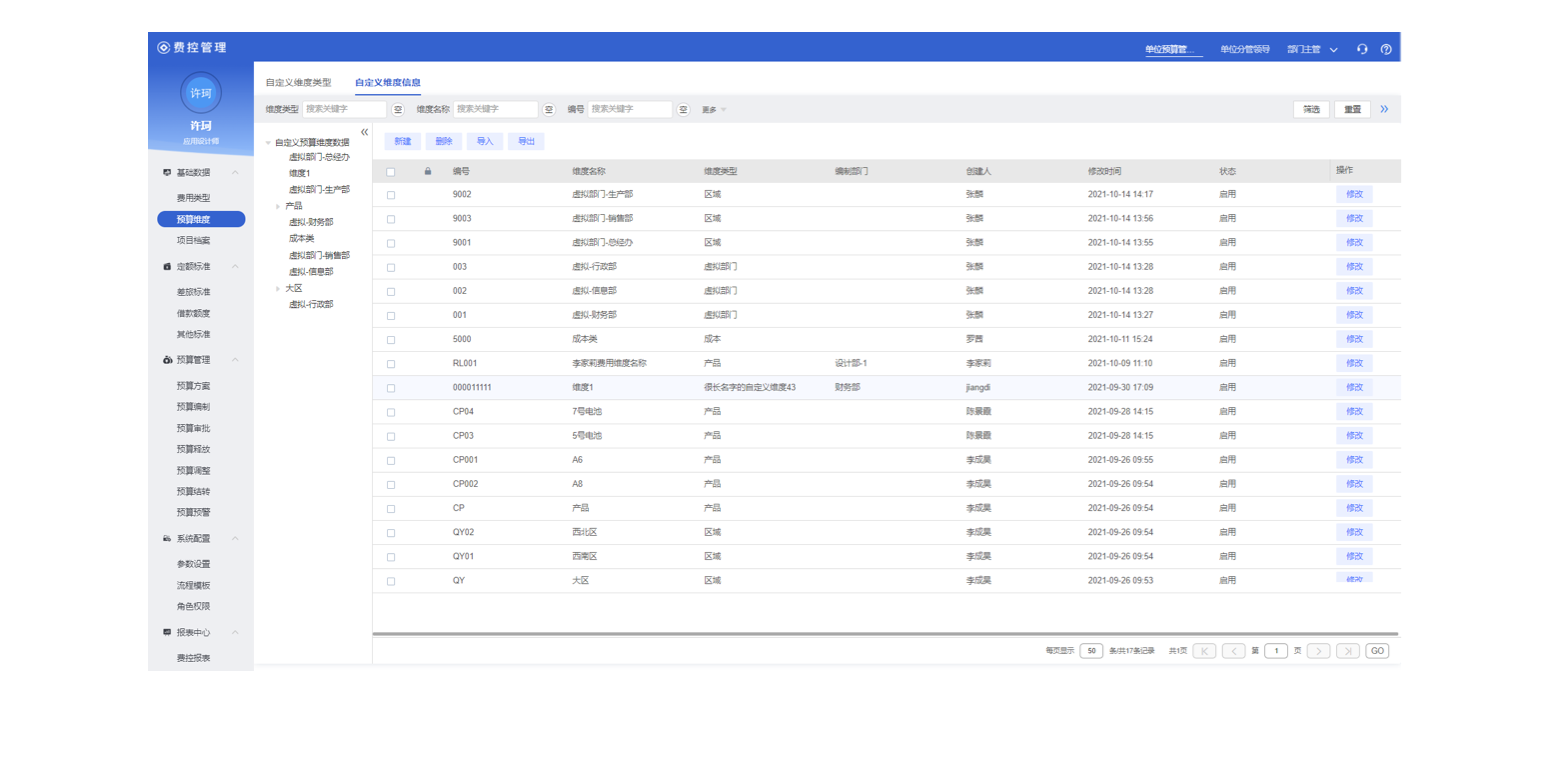 系統(tǒng)提供各類基礎數(shù)據(jù)定義,如費用類型,項目檔案,自定義維度等。