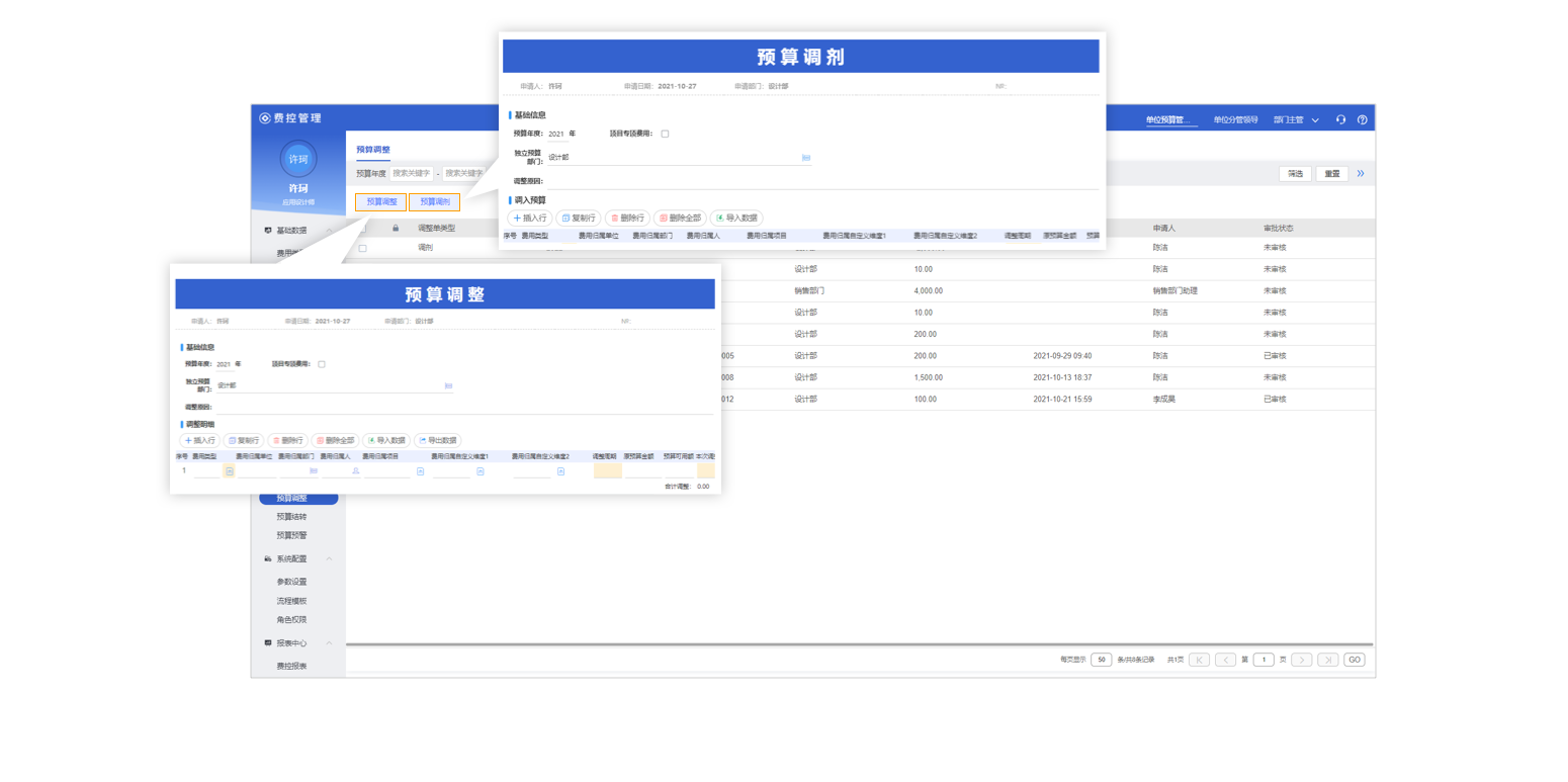 產(chǎn)品支持在會計期間與既定科目間進行預算調(diào)整,如同部門不同科目間,同科目不同部門間,同部門不同月底間、同月度不同部門間等。