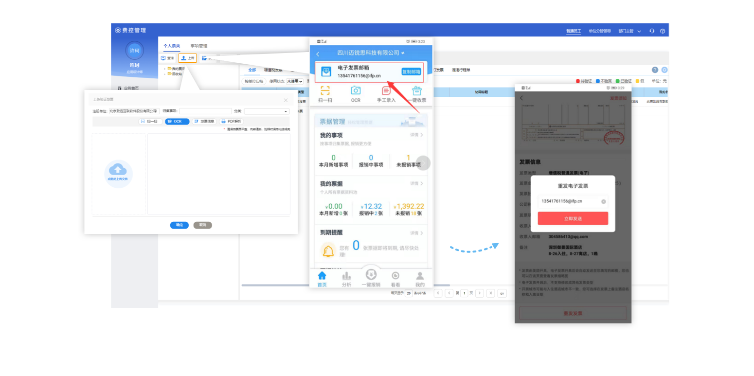 票據(jù)管理子模塊包括掃一掃、OCR識別、手工錄入發(fā)票信息、電子發(fā)票PDF、OFD 解析方式上傳票據(jù),可實現(xiàn)企業(yè)票據(jù)的統(tǒng)一管理。移動端支持一鍵收票(微信、支付寶、攜程、京東、滴滴、南航、高速公路收費服務)、發(fā)票拍照上傳,方便操作。 票據(jù)管理與稅務系統(tǒng)打通,實現(xiàn)電子發(fā)票的驗真驗重,及其他票據(jù)的驗重,納稅人識別號的校驗。支持發(fā)票共享、實現(xiàn)本人上傳,他人報銷,方便多人的報銷業(yè)務處理,不支持Excel 導入發(fā)票。業(yè)務包含票據(jù)上傳錄入、查詢過濾、分類共享、票據(jù)查看、發(fā)票驗證、回收刪除、關聯(lián)協(xié)同、一鍵報銷、 自定義分類等功能。