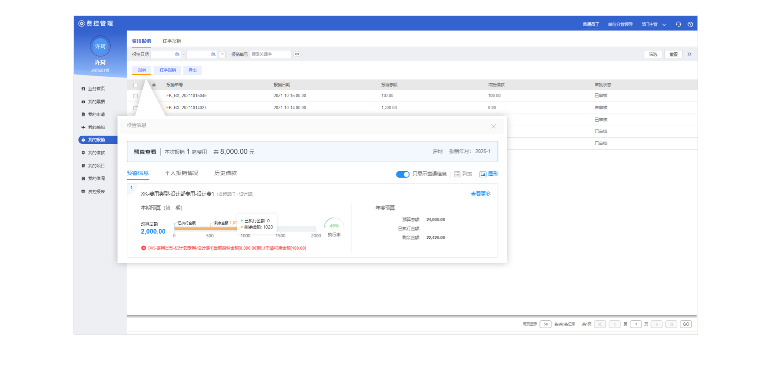 根據(jù)不同的費用類型的事前控制規(guī)則,支持使用前須先發(fā)起費用申請,申請費用占預算,將預算控制前置,從源頭控制預算,也可將申請單共享與轉(zhuǎn)交于他人,便于申請事項信息的共享與交接。