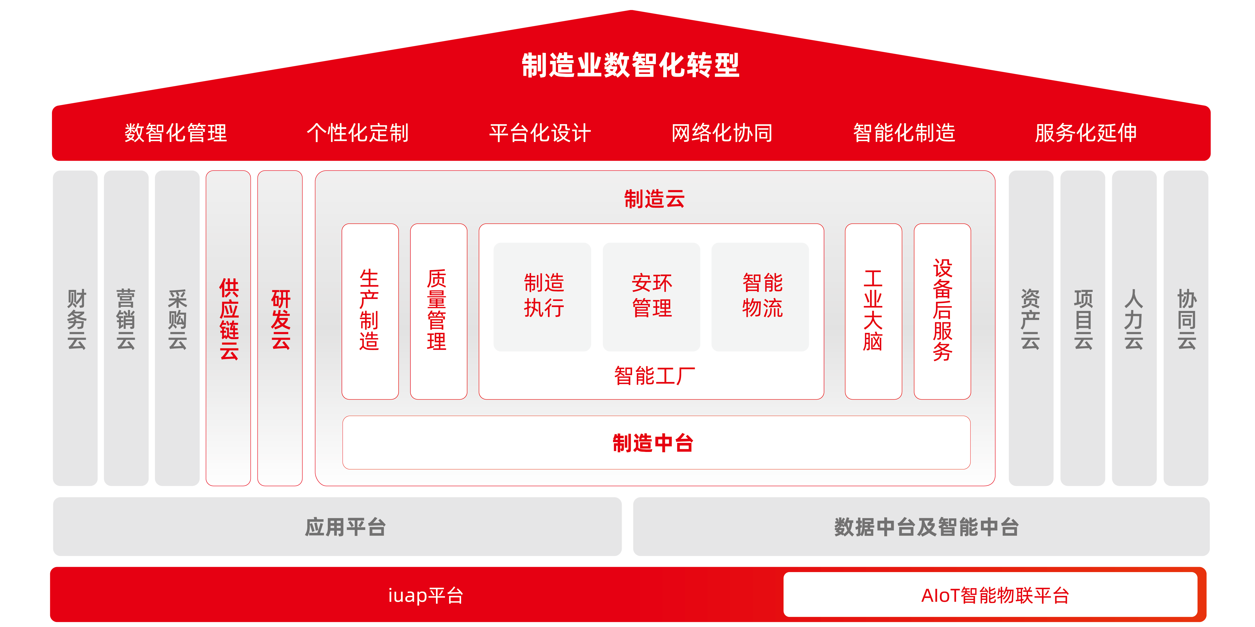 制造云基于工信部智能制造標(biāo)準(zhǔn)體系,以精智工業(yè)互聯(lián)網(wǎng)平臺(tái)為依托,實(shí)現(xiàn)制造數(shù)據(jù)的實(shí)時(shí)采集,制造信息的集成融合,制 造業(yè)務(wù)的貫通與閉環(huán)、制造管控的智能決策,幫助大型、多制造模式、多工廠的集團(tuán)型制造業(yè)管控安全、提高質(zhì)量、縮短交 期、提升效率、降低成本,由此提升綜合競爭力,在數(shù)智化管理、智能化制造、網(wǎng)絡(luò)化協(xié)同、服務(wù)化延伸、個(gè)性化定制等方 面實(shí)現(xiàn)數(shù)智化轉(zhuǎn)型,推動(dòng)工業(yè)企業(yè)高質(zhì)量發(fā)展。